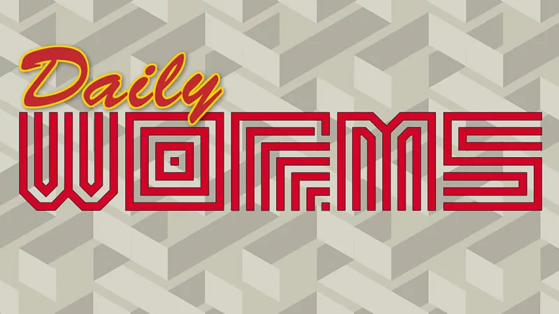 Play the daily worms puzzle game. Connect all the dots with a path. Use all the cells and paths need to change direction after every cell.